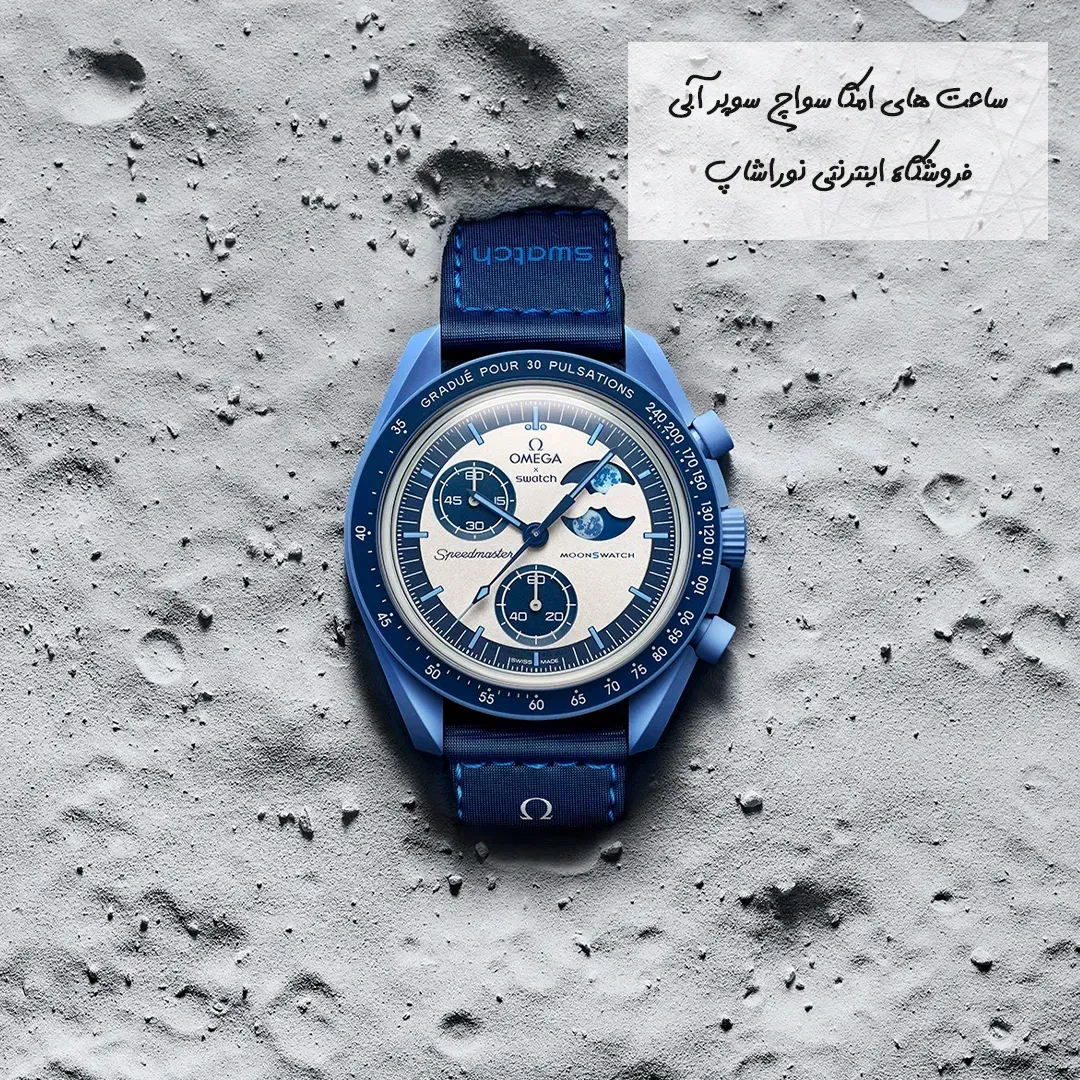 این مدل از ساعت های امگا و سواچ با ترکیب رنگی آبی و صفحه سفید با کرنوگراف آبی طراحی و به بازار عرضه شده است. این مدل بر خلاف دیگر مدل های عرضه شده دارای قاب اندازه گیری ضربان قلب به جای تاچیمتر است.