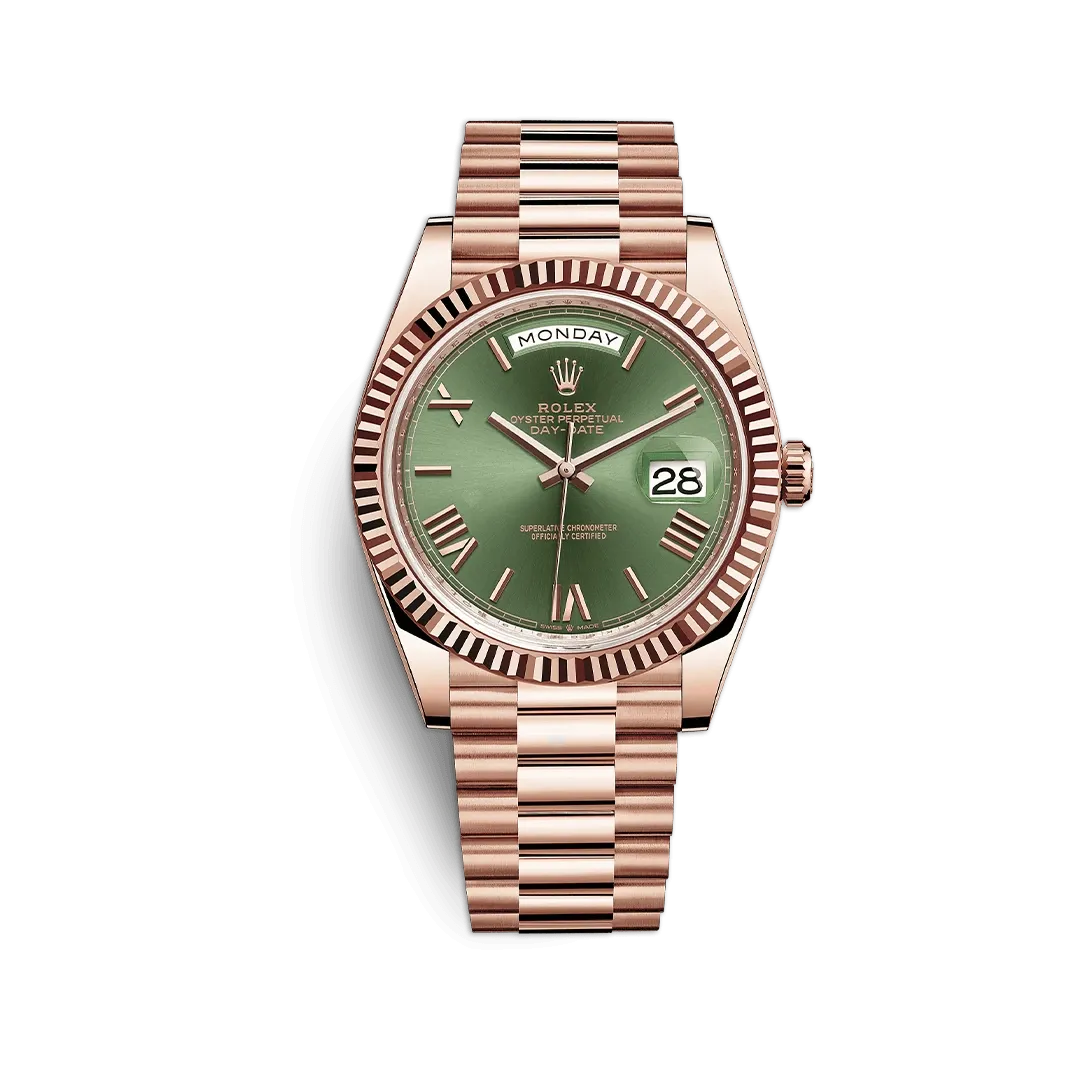 ساعت رولکس دی دیت رزگلد صفحه سبز یکی از رنگ های جدید و جذاب برند رولکس است. از ویژگی های این مدل می توان به نمایشگر نام روز هفته, موتور اتوماتیک, نمایشگر تاریخ و قابلیت ضد آب اشاره کرد. کیفیت این ساعت بسیار بالا بوده و دارای گارانتی 1 ساله رنگ و موتور است. رنگ سبز صفحه این مدل بسیار جذاب و کمیاب بوده و از لحاظ ظرافت طراحی بسیار مشابه با نمونه های اصلی این مدل ساخته شده است. نشانگر های های اعداد روی صفحه این مدل به شکل اعداد یونانی طراحی شده است. این ساعت به همراه جعبه اورجینال رولکس به دست شما خواهد رسید.