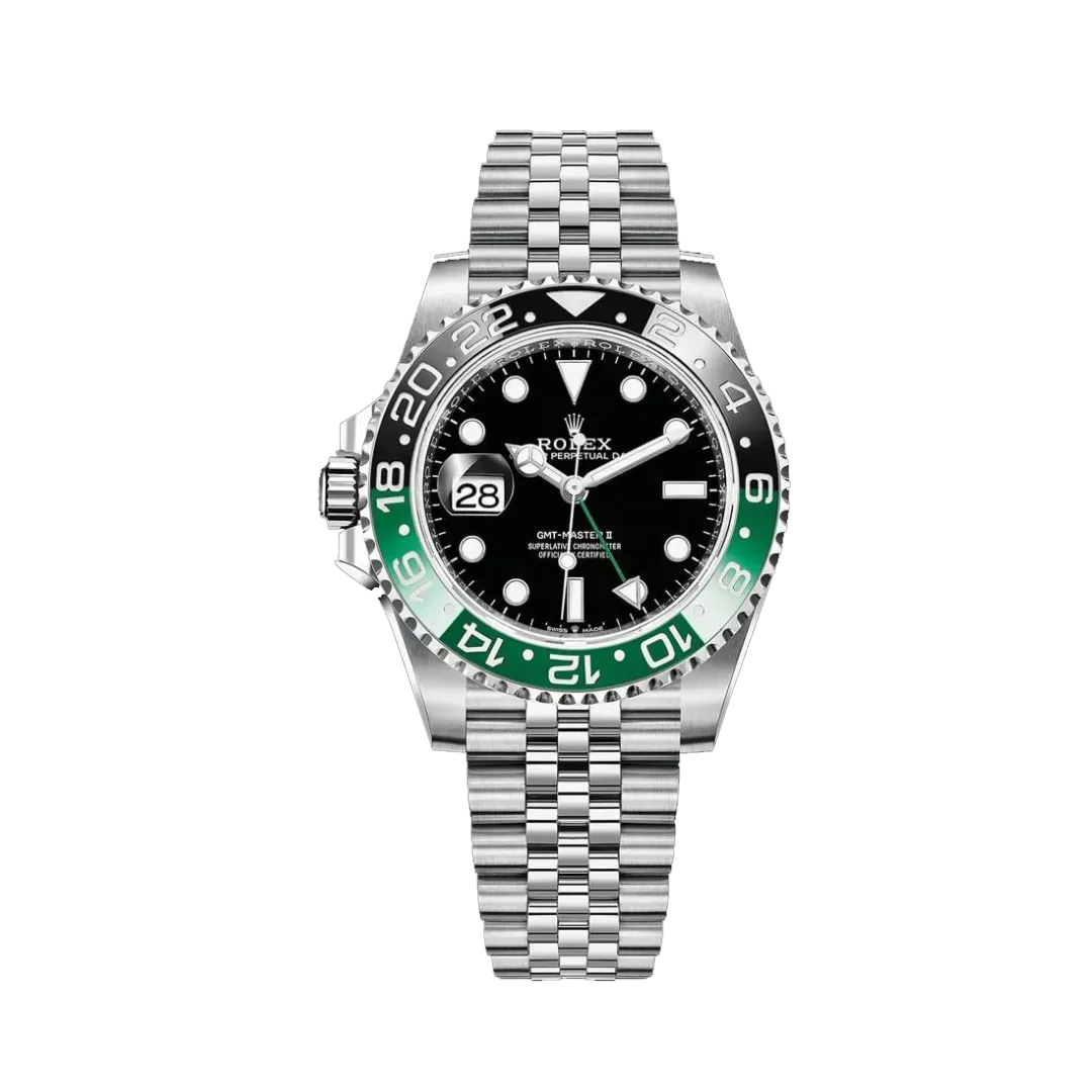 ساعت رولکس جی ام تی مستر 2 اسپرایت ( دسته کوک چپ ) GMT Master II اولین ساعت دسته کوک چپ برند رولکس است این مدل از مجموعه مشهور GMT-Master2 Rolex است که با هدف نمایش همزمان دو منطقه زمانی برای خلبانان طراحی و ساخته شده است. جنس بدنه این ساعت مردانه تمام استیل بوده و دارای شیشه ضد خش سافایر است. قاب (بزل) چرخشی این ساعت با ترکیب رنگی سبز و مشکی که دارد به نام اسپرایت sprite در میان علاقمندان به ساعت مچی شهرت دارد. از ویژگی های این ساعت رولکس می توان به موومنت اتوماتیک, نمایش تاریخ, قاب چرخشی, قابلیت ضد آب, شیشه ضدخش اشاره کرد. عقربه و نشانگر های زمان ساعت جی ام تی مستر 2 خاصیت شب نما دارد. بند به کار رفته در این ساعت با نام جوبیلی شهرت دارد.